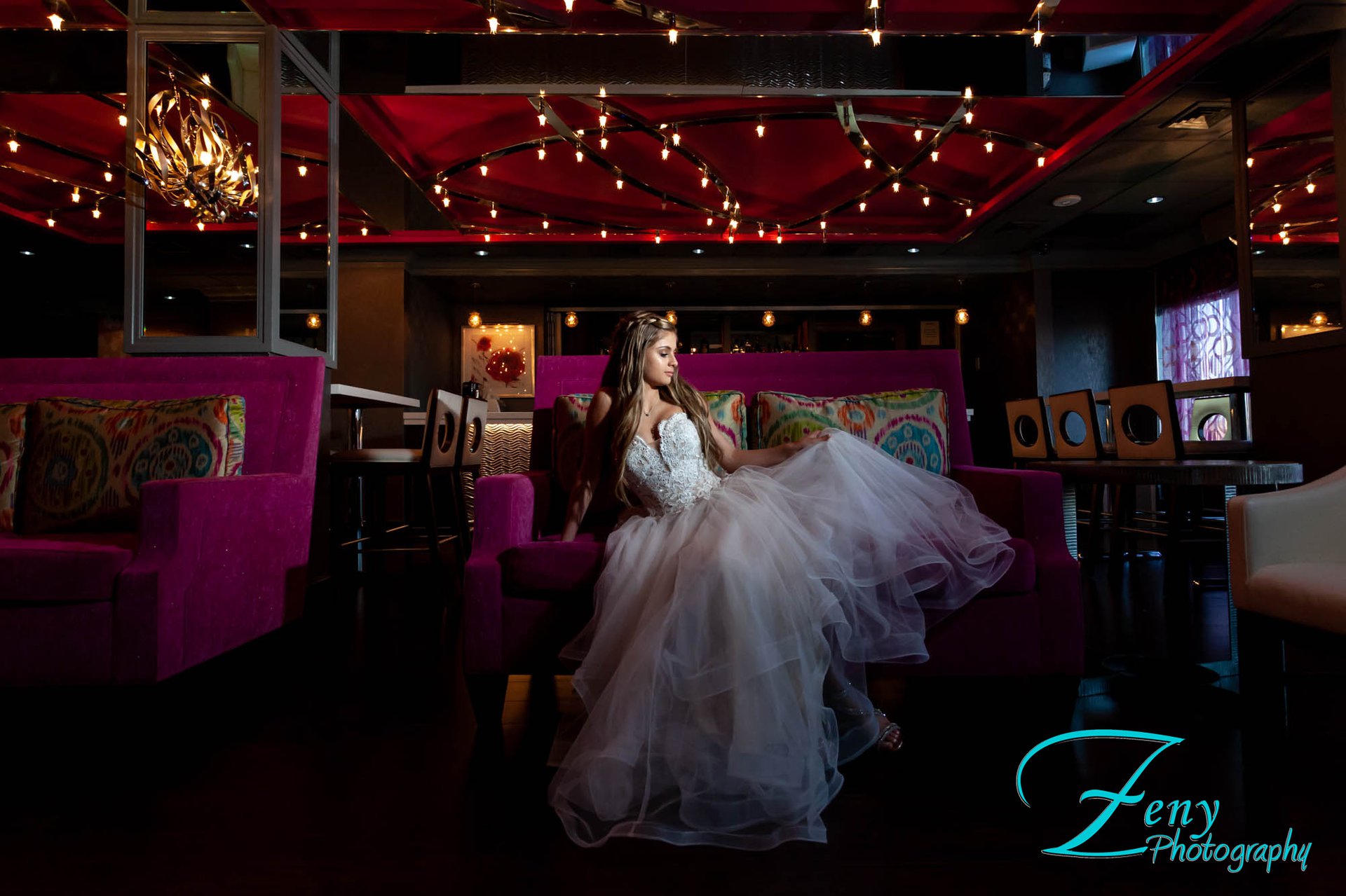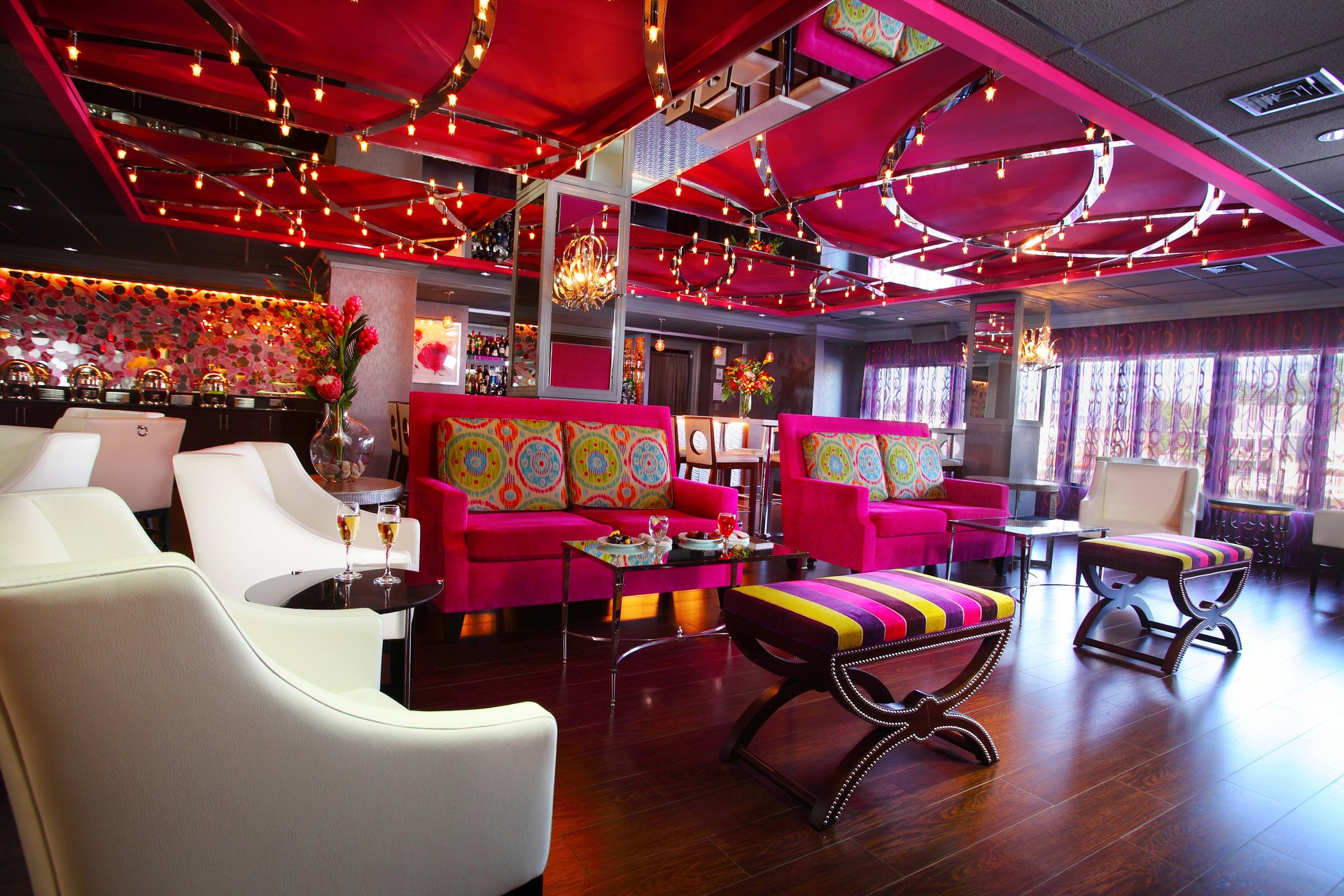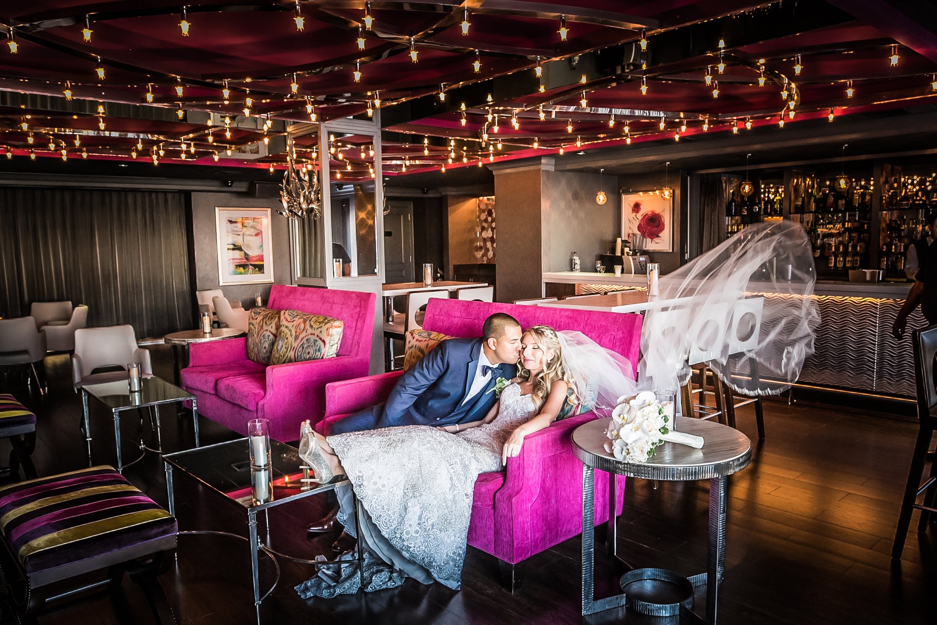 A vivid mix of bright colors, textured surfaces and sculptural lighting fixtures establishes an elated mood in the Rose Lounge. Equipped with its own exclusive bar and lounge setup. Russo’s fresh multi-purpose space – perfect for everything from pre-wedding accommodations to after-parties, or as a “VIP” room during your event.